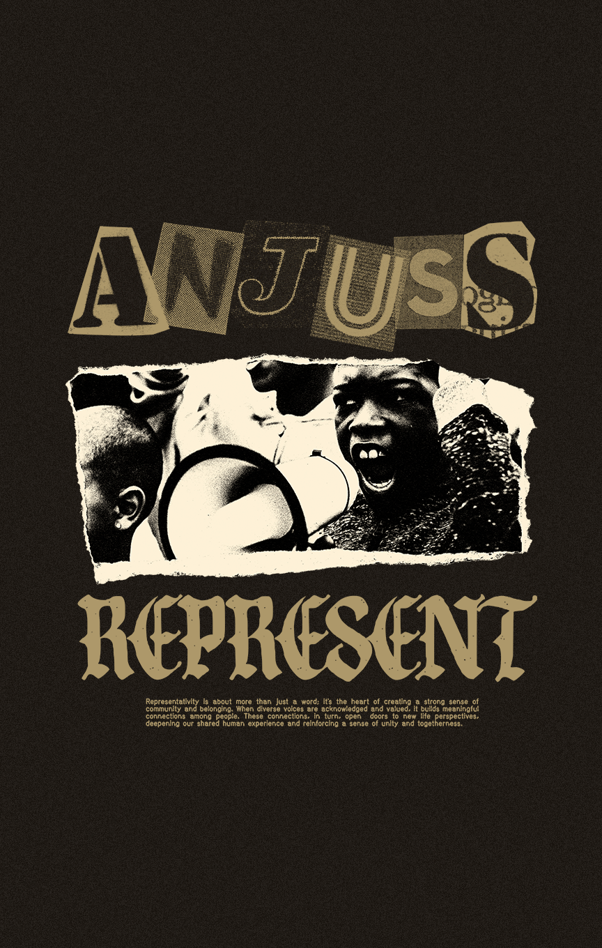 Primeiro drop que desenvolvi na marca Anjuss. REPRESENT é sobre representatividade, buscando inspiração no design como forma de protesto, principalmente nos cartaz Punk das décadas de 70 e 80, utilizando figuras que simbolizam atos de protesto e busca por igualdade.